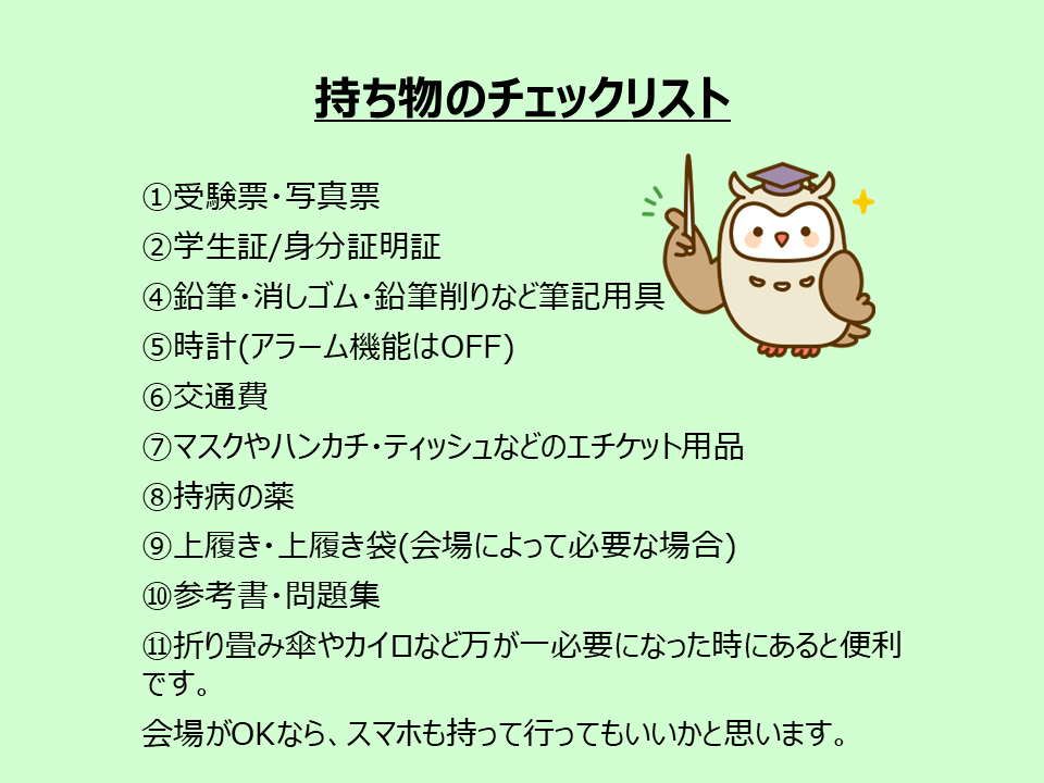 いつも通り落ち着いて勉強することが大切だと伝えます。