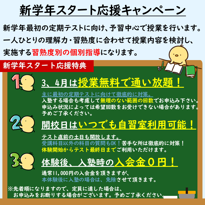 新規の方限定で,新学年スタート応援キャンペーンとして